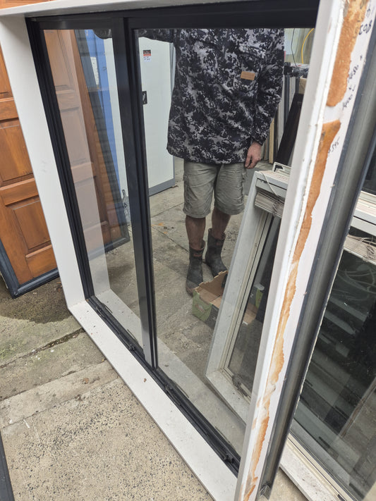Grey Bi parting Sliding door with opening windows 2m H x 3 W #2049