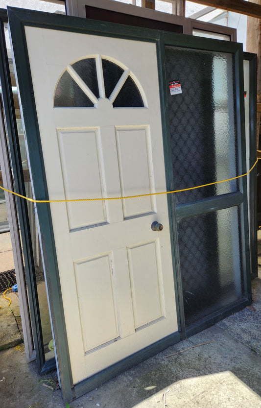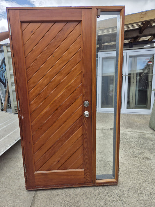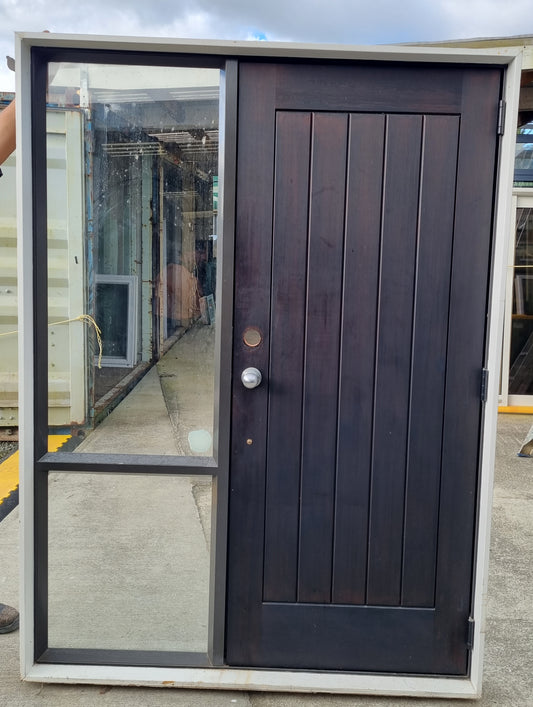 Karaka Green Entranceway with Wooden Door & Sidelight 2 H x 1.6 W #SDF2