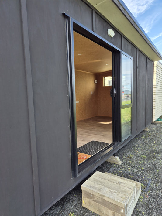 9.6 x 3m Portacom, Ranchslider, sliding windows & Kitchen unit