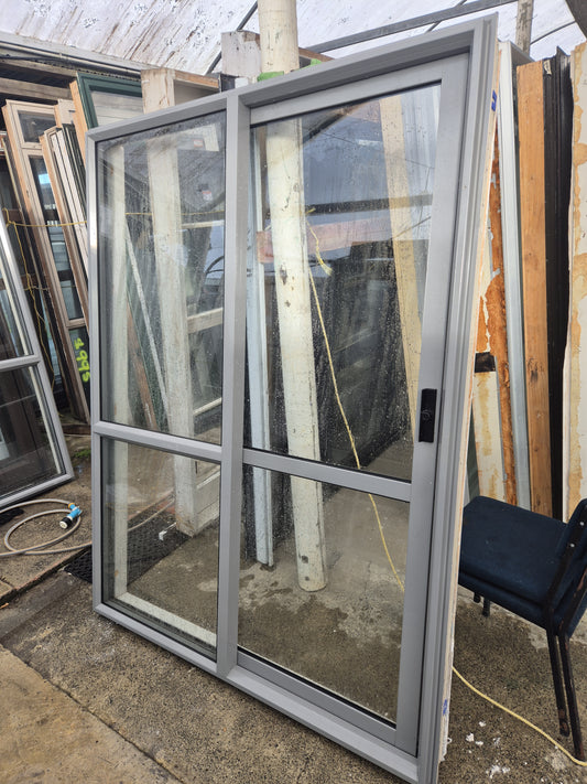 Grey Bi parting Sliding door with opening windows 2m H x 3 W #2049