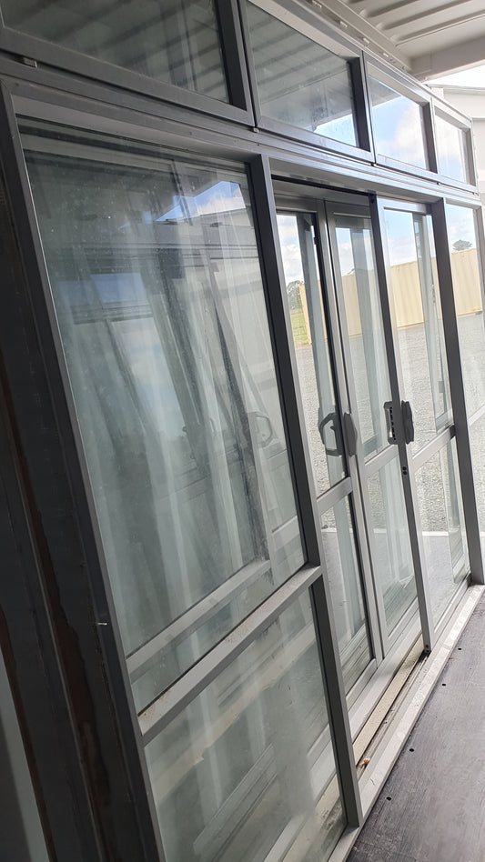 Bi-parting sliding door with opening windows 2300 H x 3235 W
