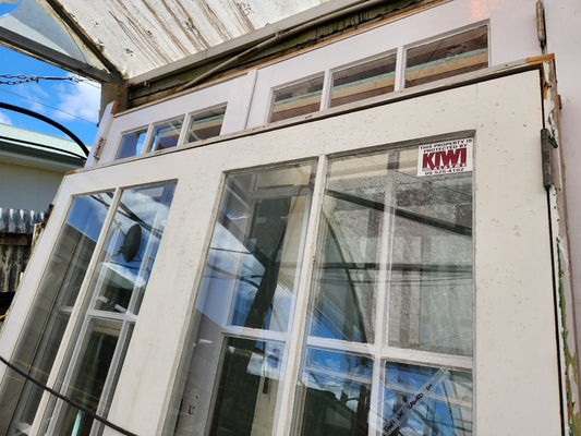Aluminium & Cedar French doors with opening windows 2240 H x 2900 W #2044b see matching joinery