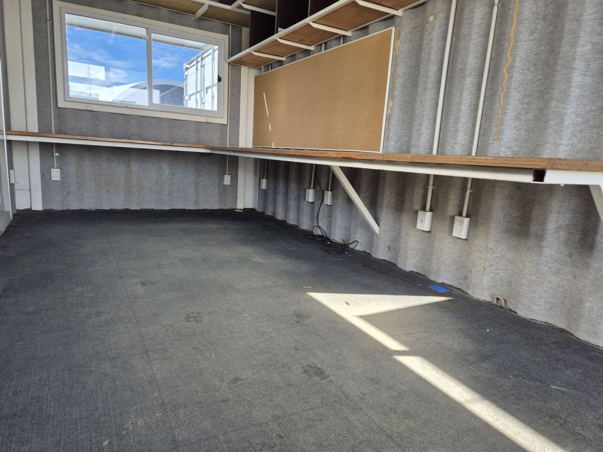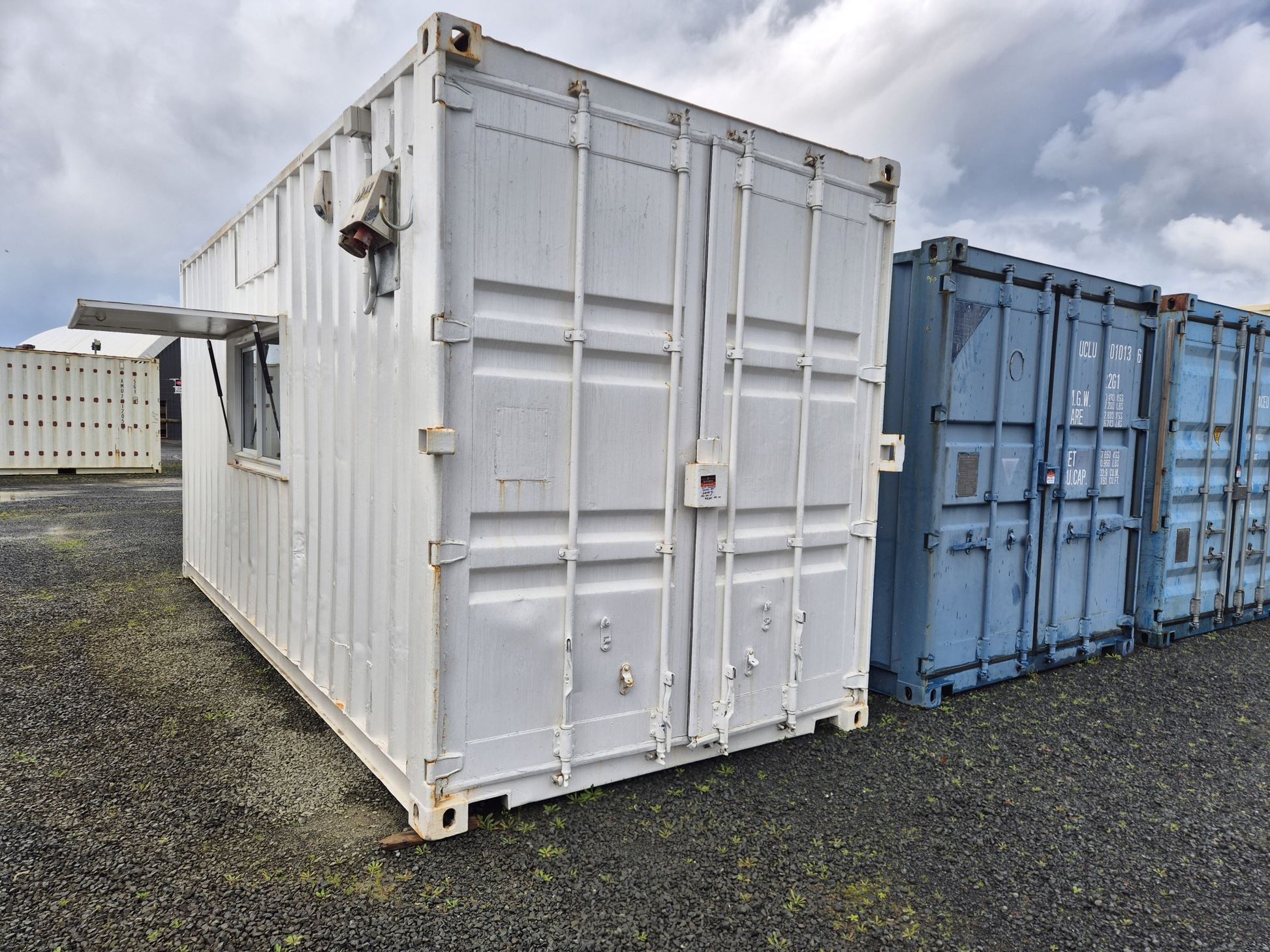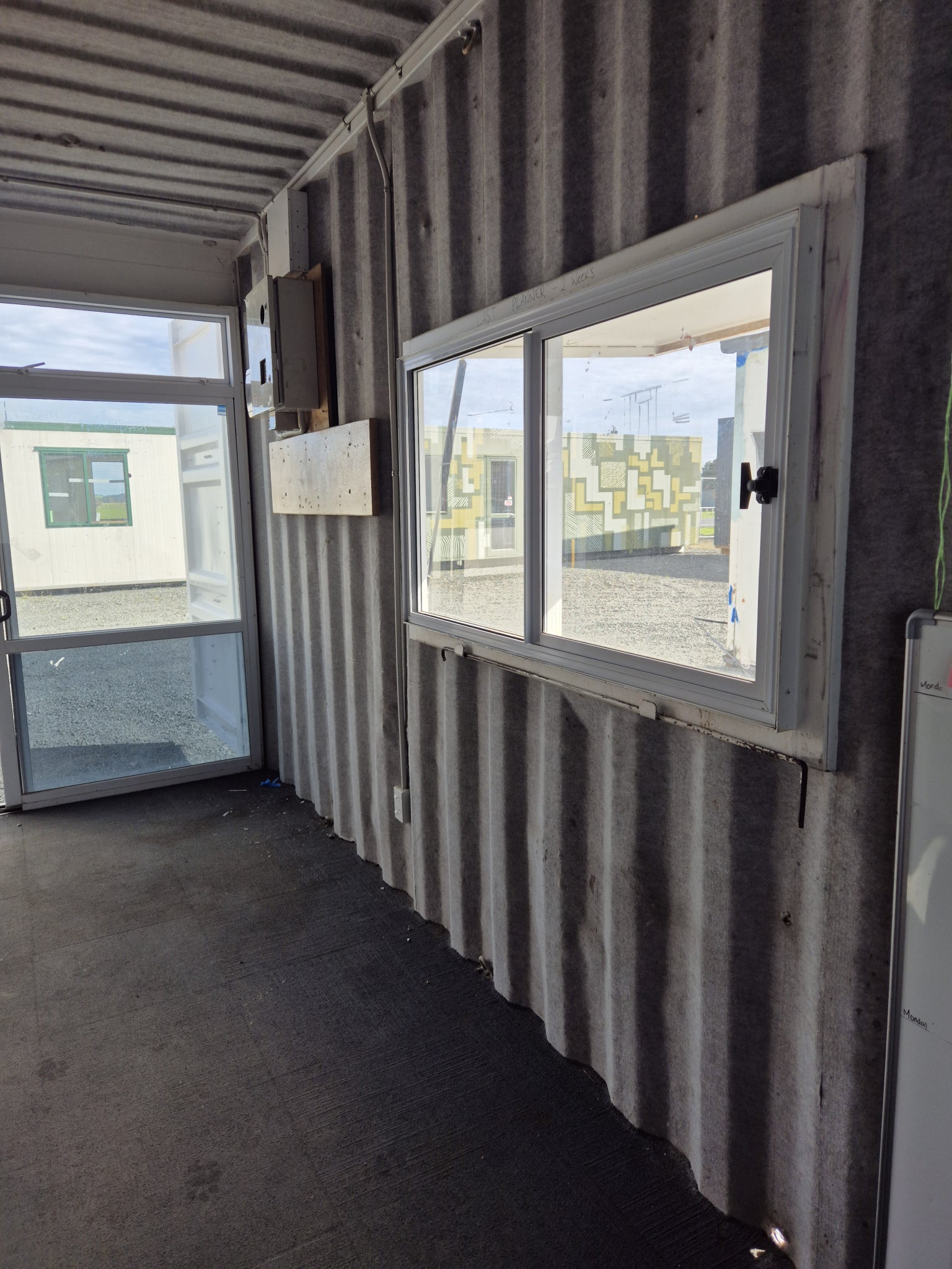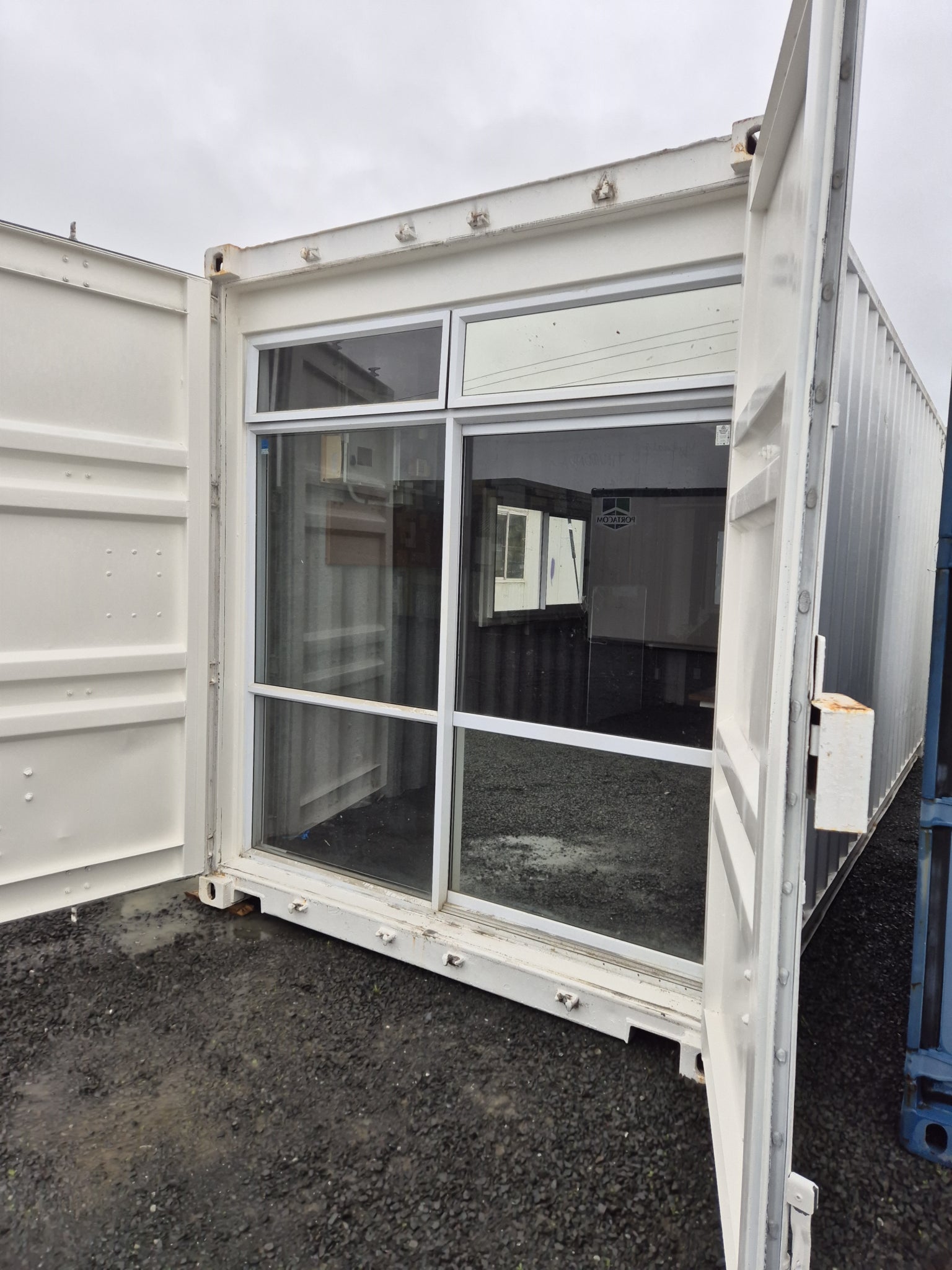 2 x windows with shutters & gas struts & a Sliding door fitted in behind the 2 end container doors