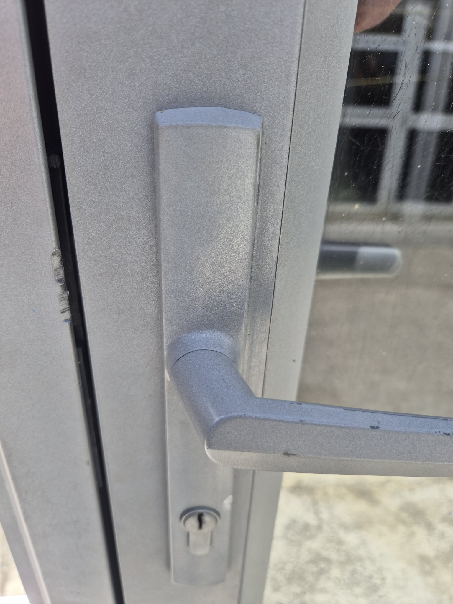 Glass is tinted, full pane safety glass, single glazed. A couple of the hinges have a little corrosion. There's a tiny dent around the lock see photo
