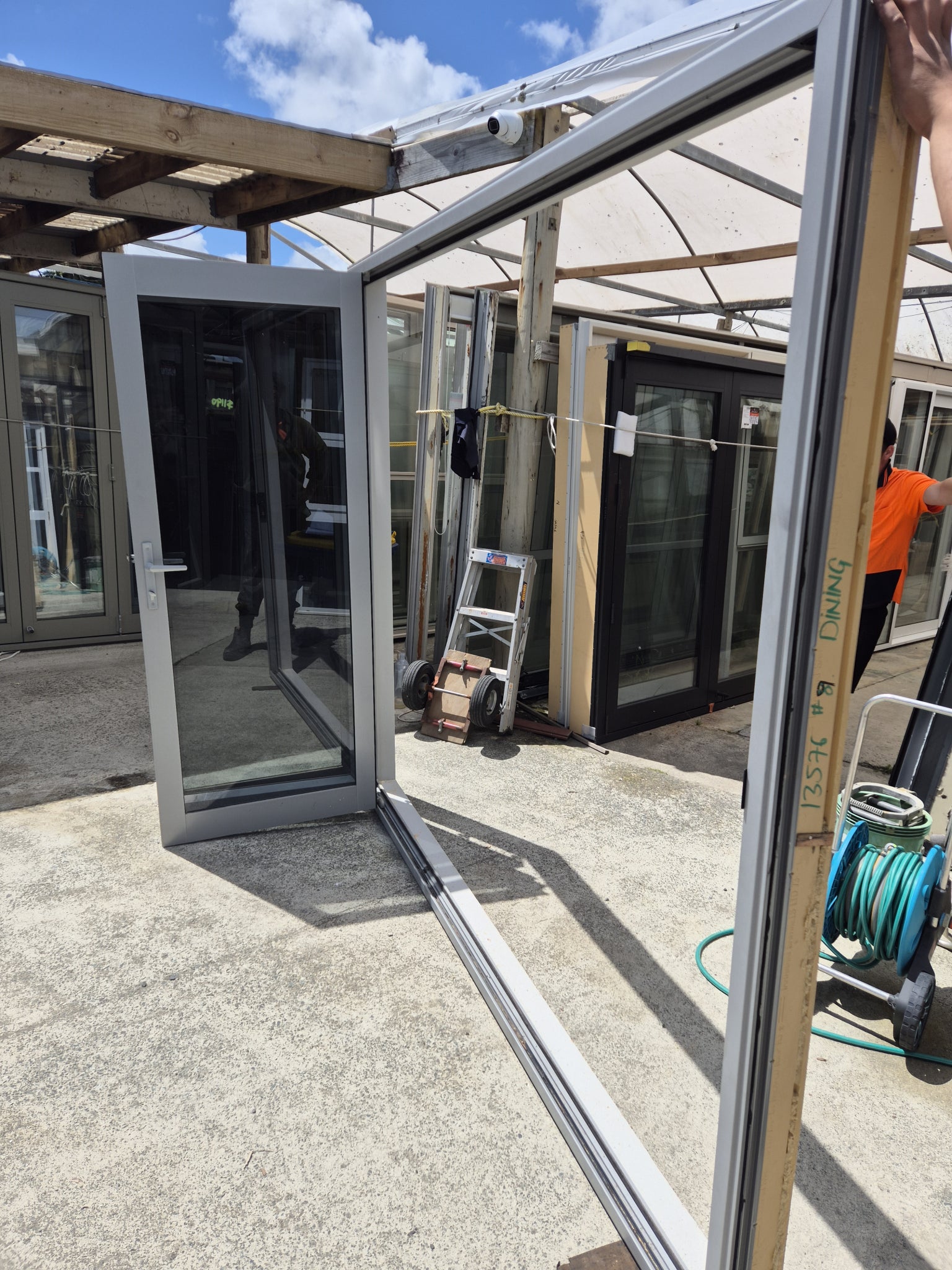 1 x Silver Pearl Bifolding door with outside access door, in very good condition