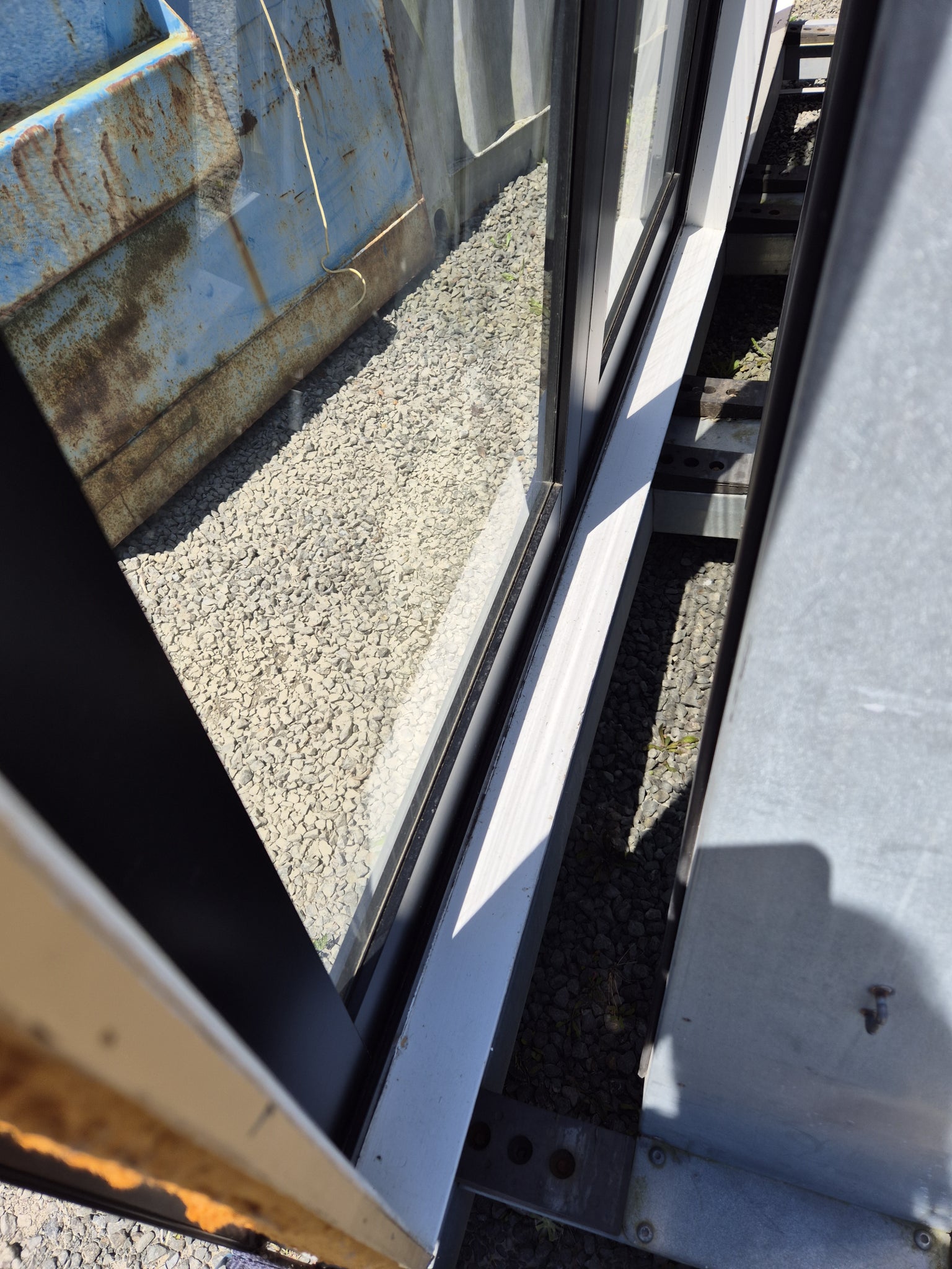 Black Aluminium French Doors (both doors open outwards & fold back flush to the outside wall). In very good recycled condition