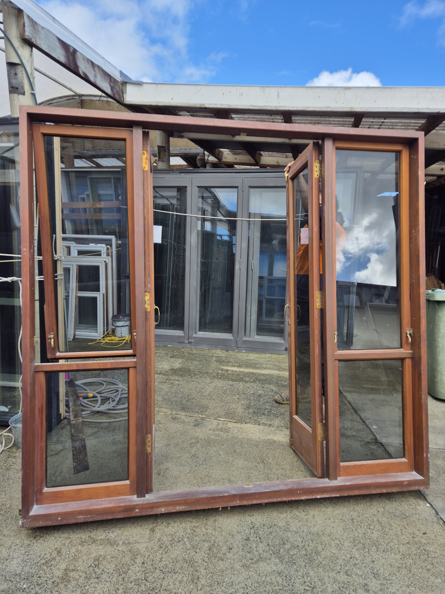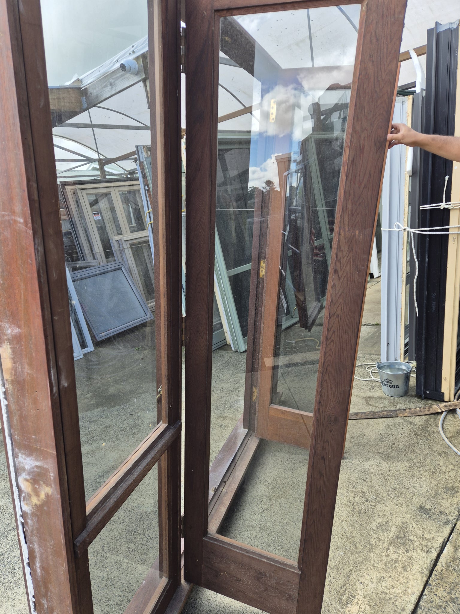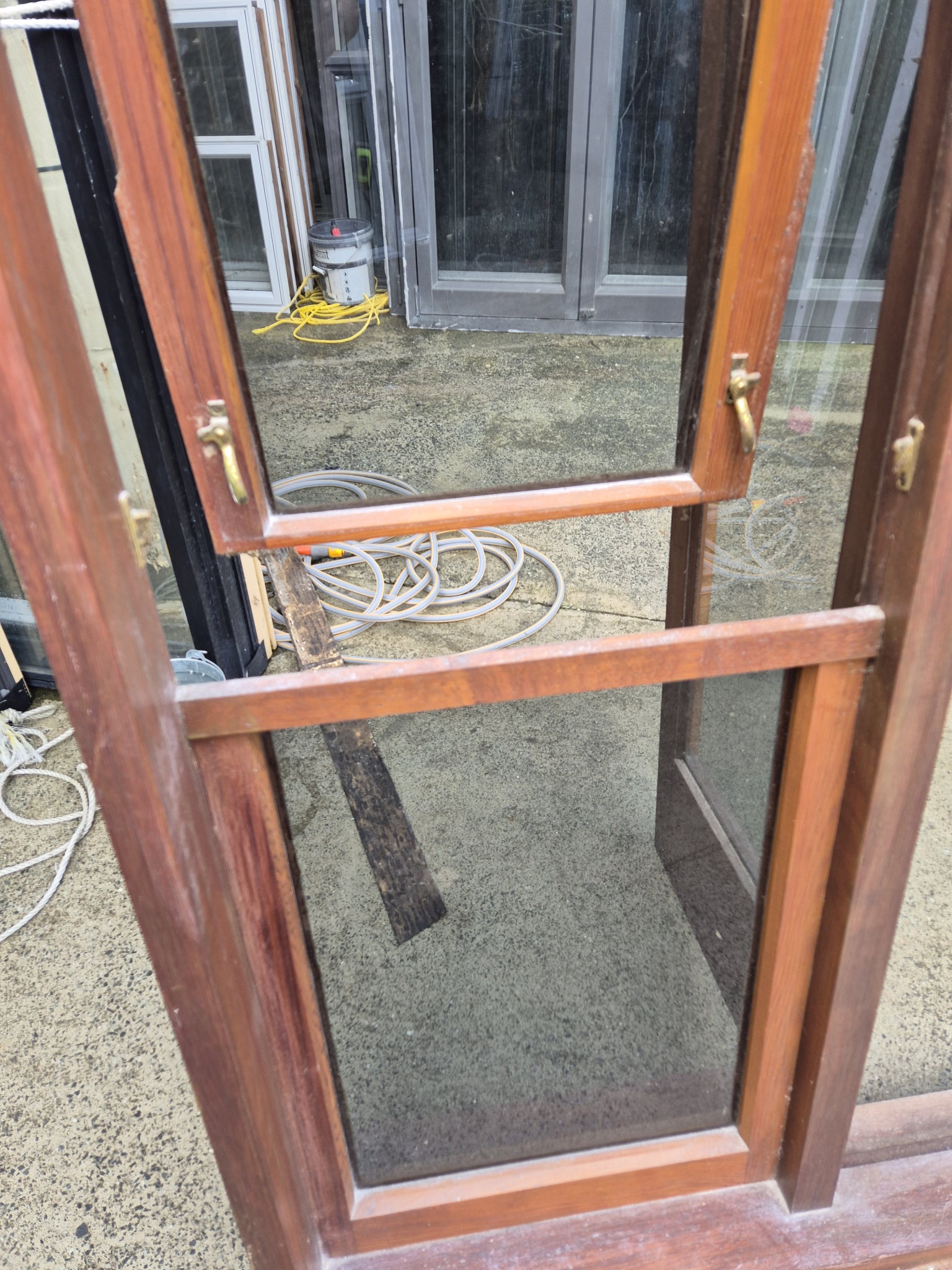 Beautiful Cedar French doors with hardwood jambs & sill (see last photo). 2 opening windows either side. Overall dimensions 2040 H x 2180 W
