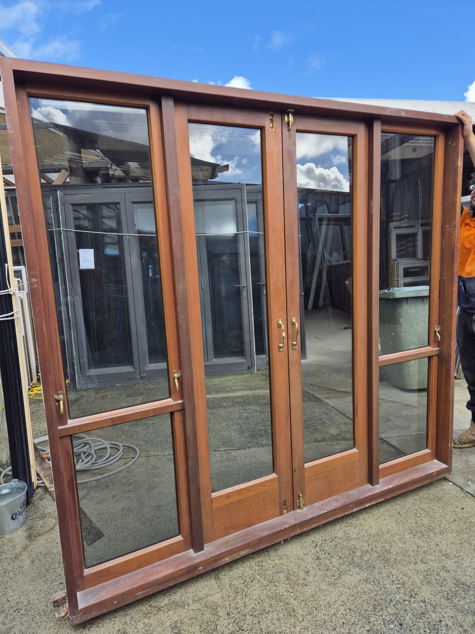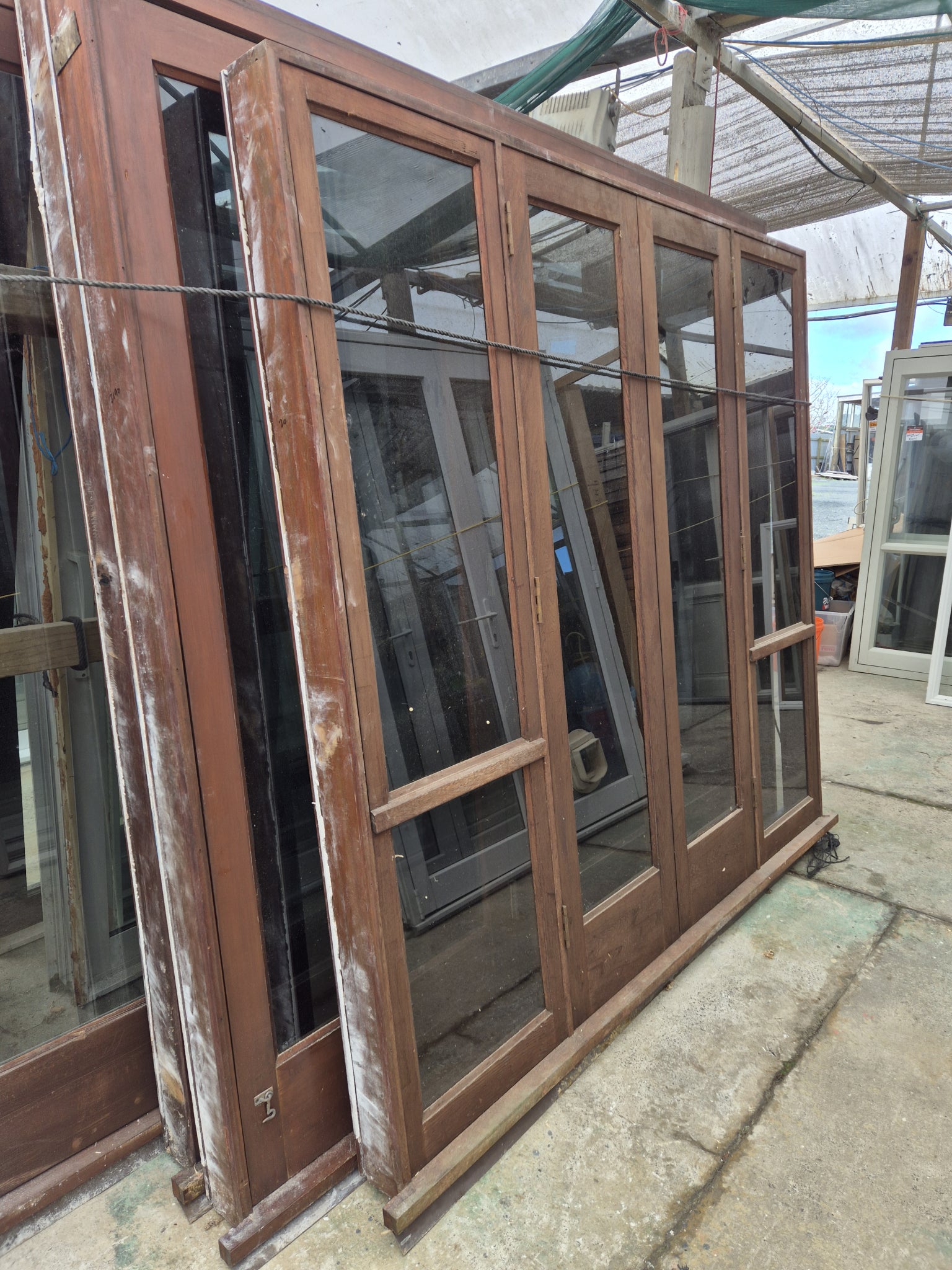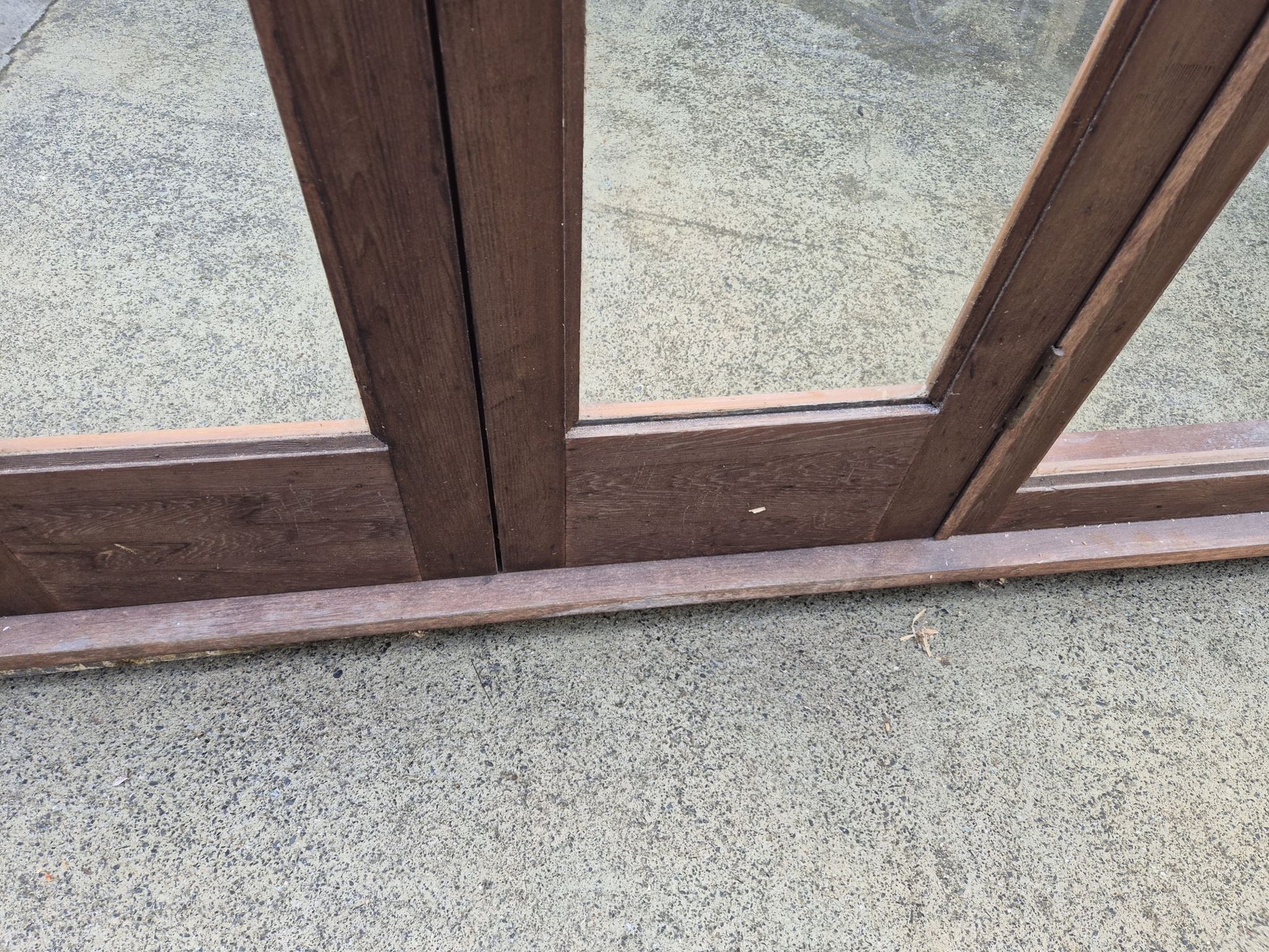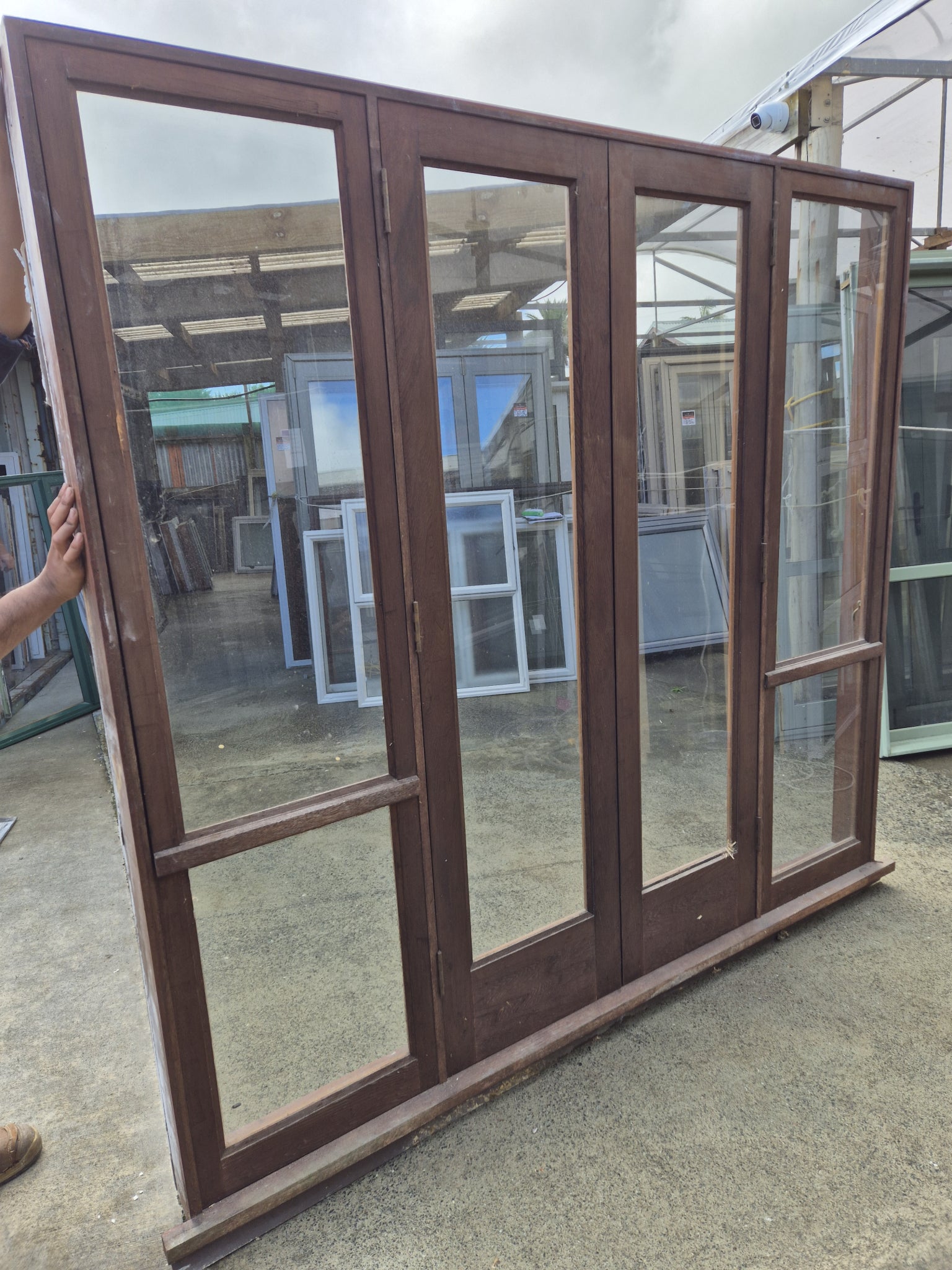 Beautiful Cedar French doors with hardwood jambs & sill (see last photo). 2 opening windows either side. Overall dimensions 2040 H x 2180 W