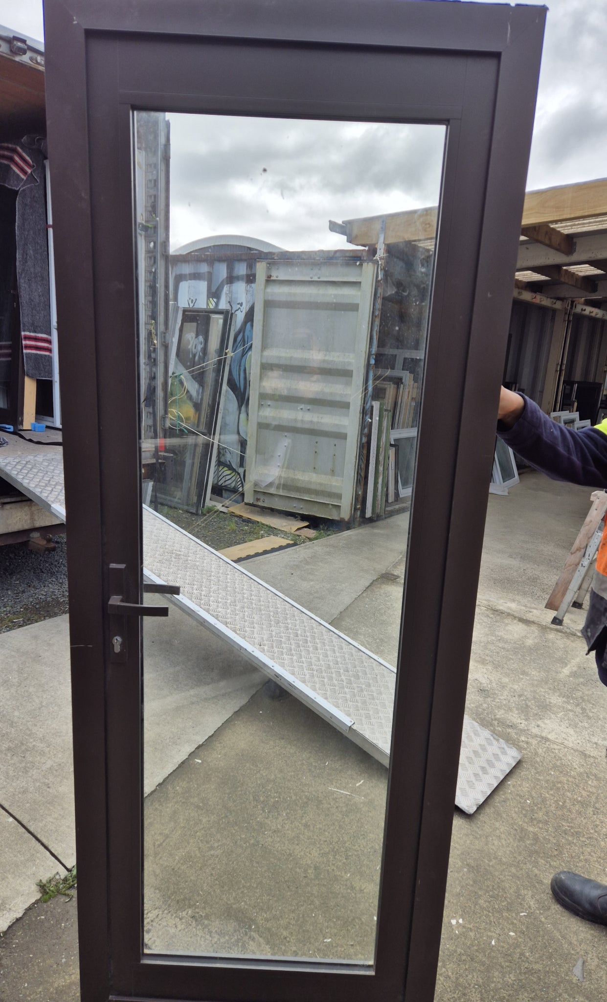 1 x Recycled Double Glazed Brown Access door, opens inwards