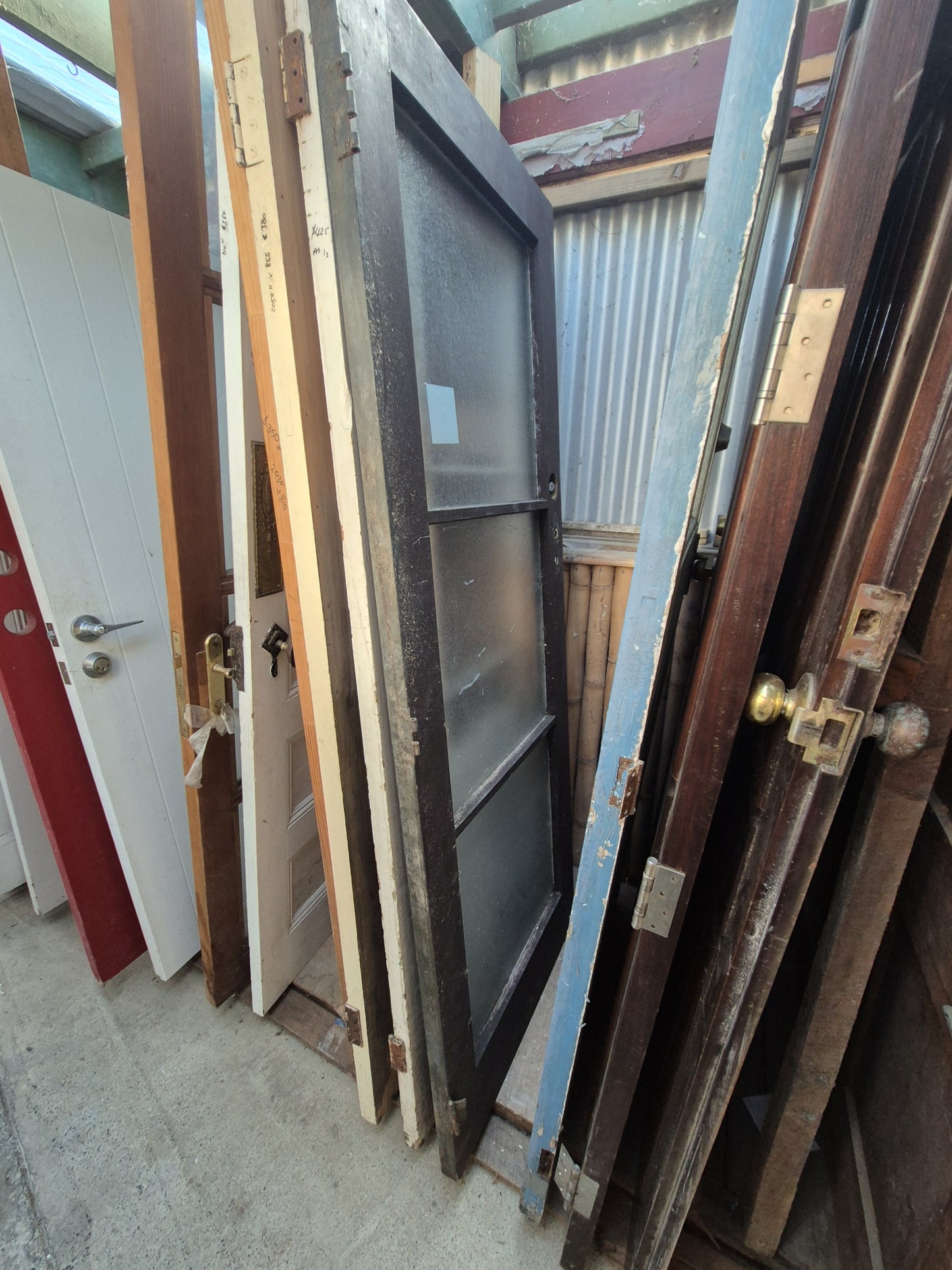 1 x Exterior Wooden Door 3 lites, frosted glass