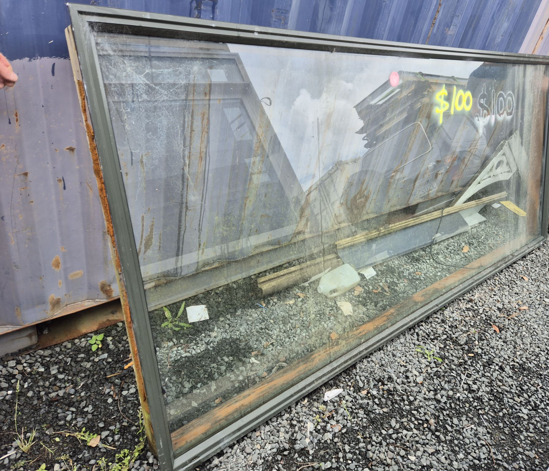1 x Large Karaka Green Aluminium Picture window, extra thick glass