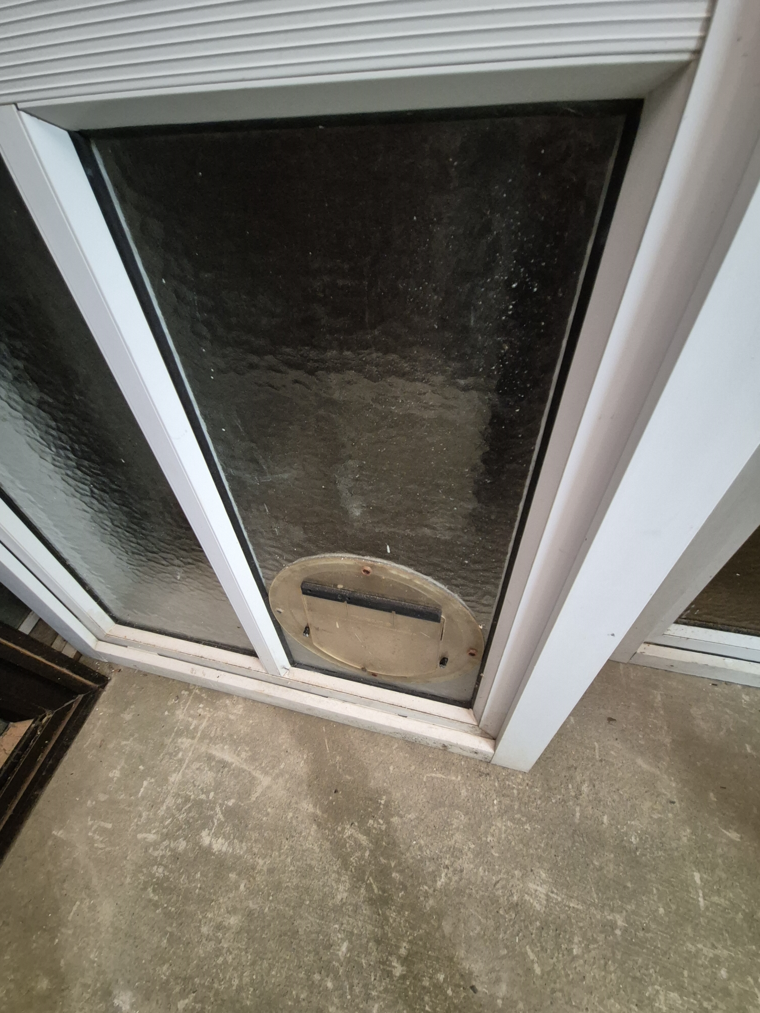 No Key. Single glazed. We can have the cat door reglazed if not required. Add $60